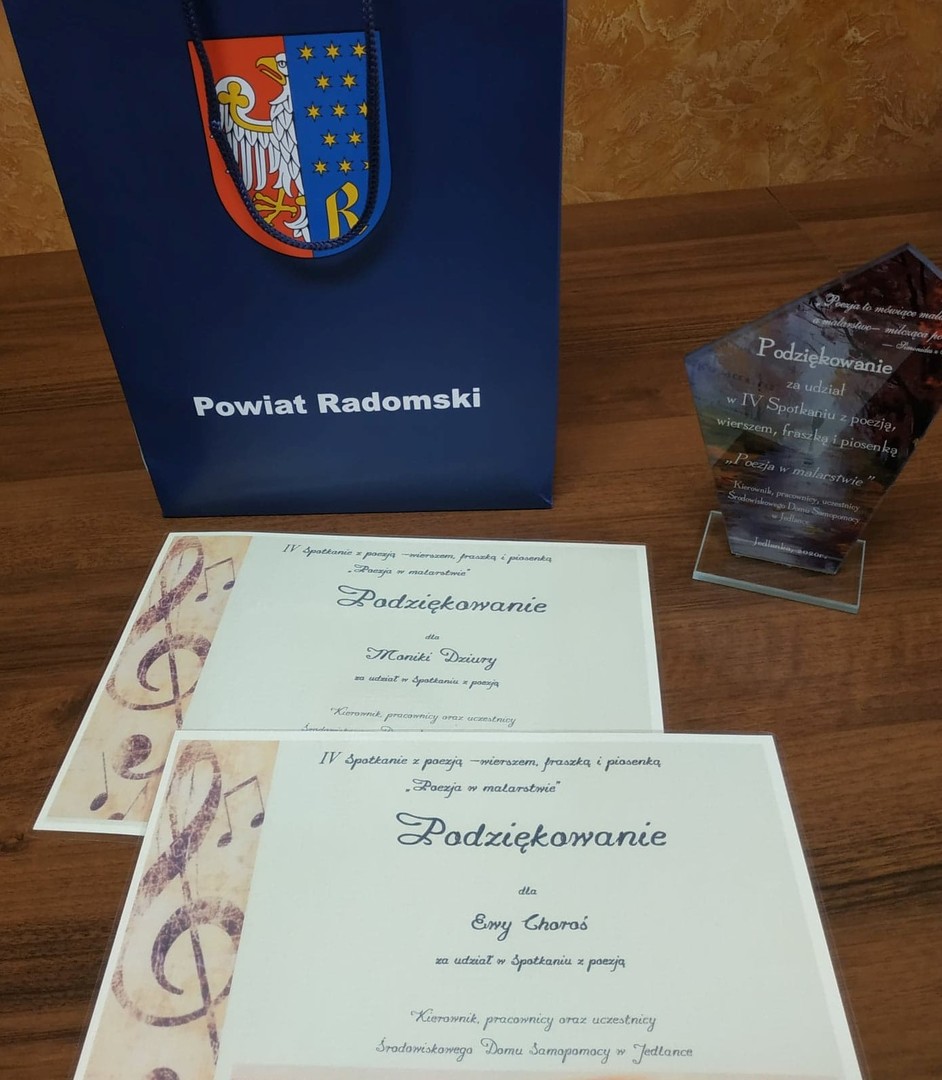 Celem wizyty było przekazanie statuetki, dyplomów i upominków dla naszych podopiecznych za udział w IV Spotkaniu z poezją - wierszem, fraszką i piosenką pt. “Poezja w malarstwie”.
